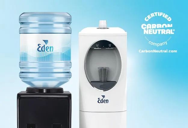 Partnering with Eden Springs means supporting a greener future. We are committed to environmental sustainability and prioritise responsible resource use and hold carbon neutrality certifications to offset our CO2 emissions.